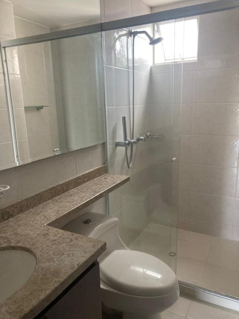 * # baños: 2 Con divisiones en vidrio