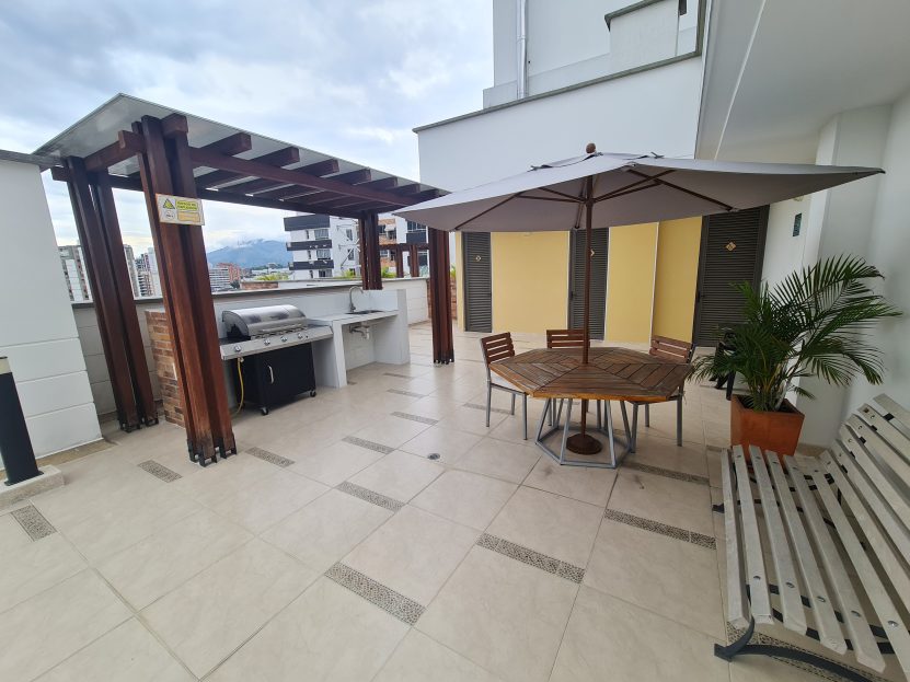 piscina para adultos. Piscina para niños. Juegos infantiles. Solo social. Lounch bar. Lobby. Parqueo visitantes. BBQ. salon de tareas. Gimnasio. Parqueadero visitantes.