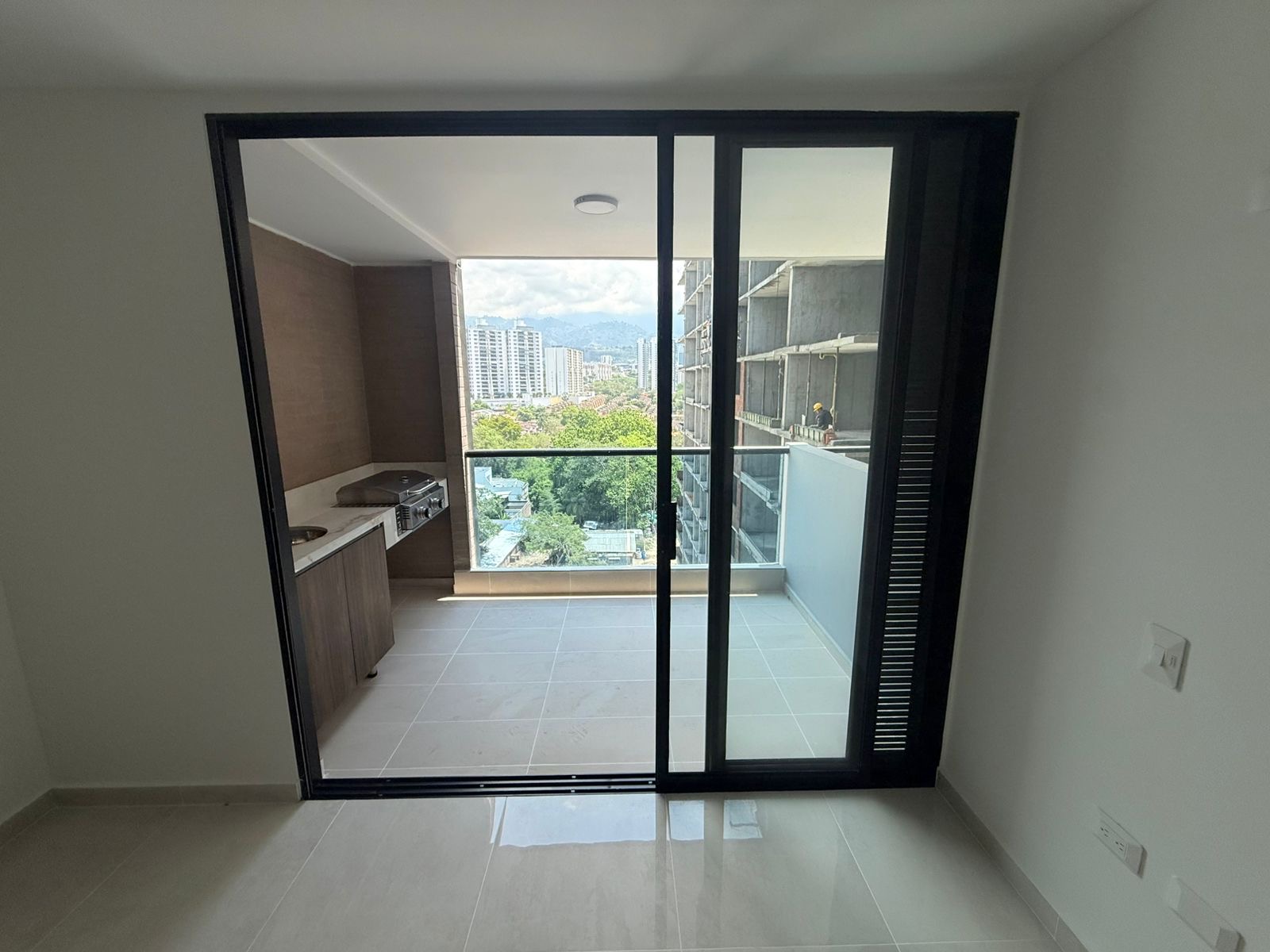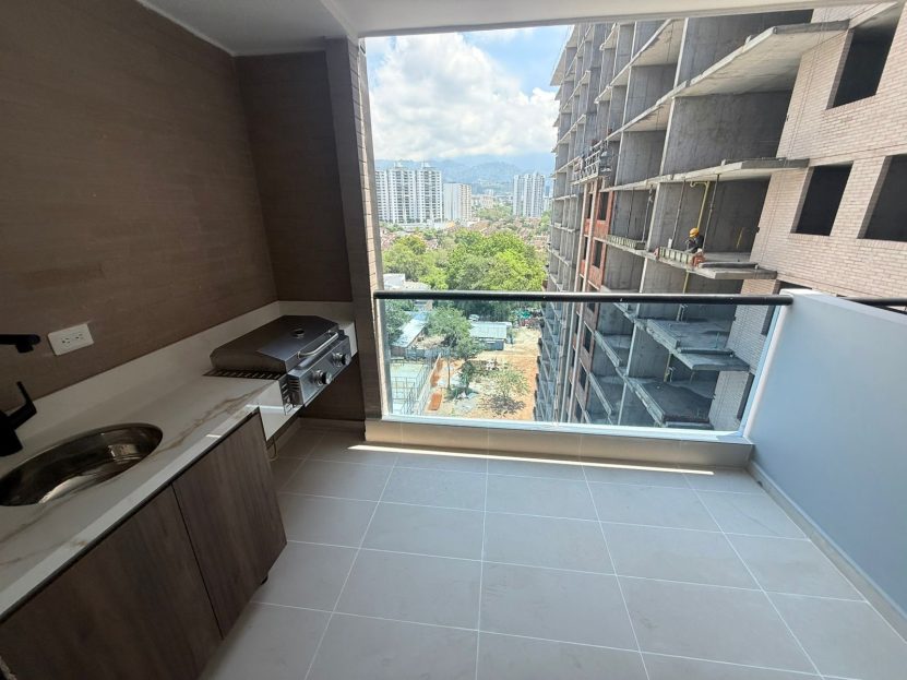 * balcón con BBQ y lavaplatos de apoyo