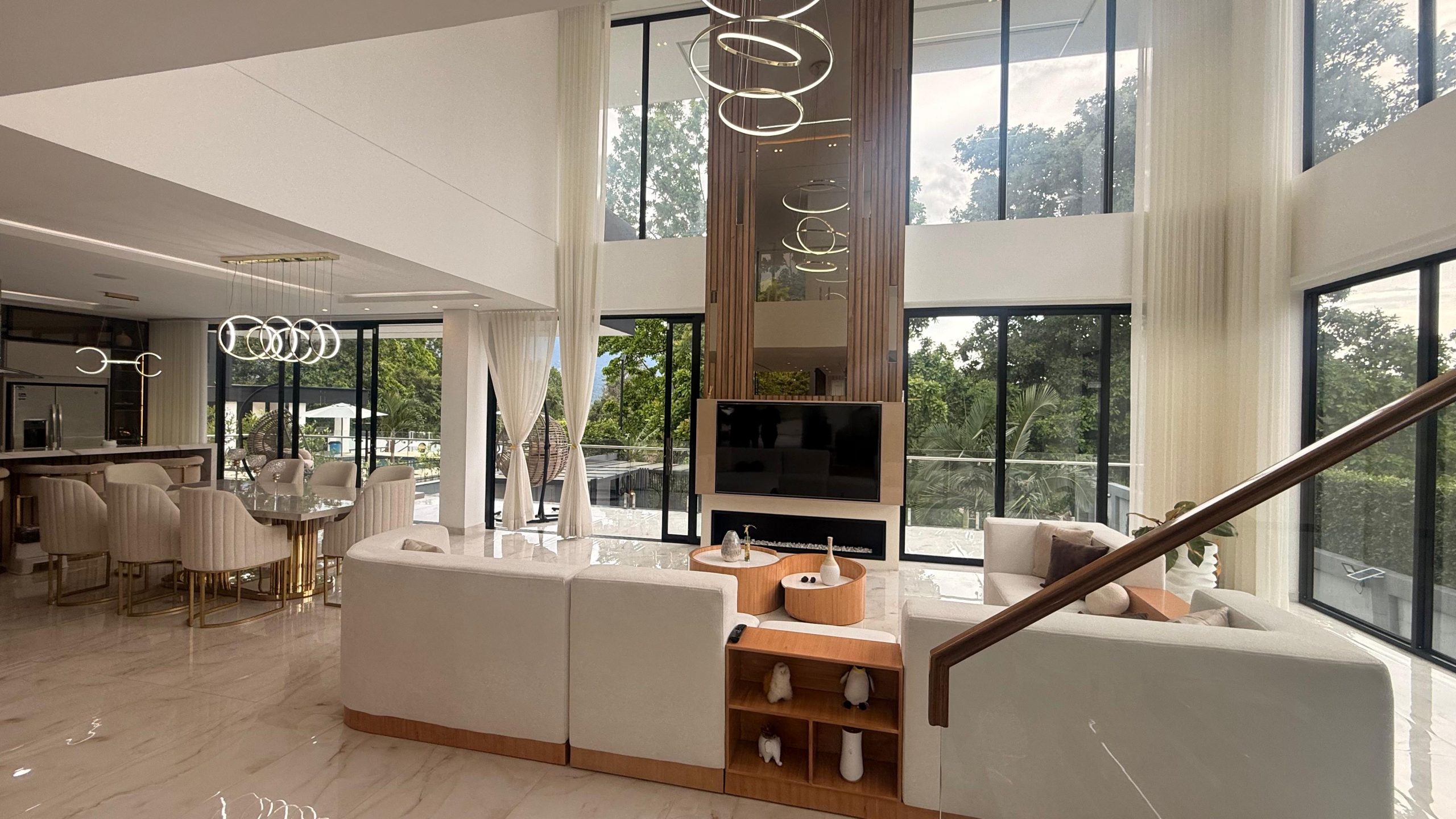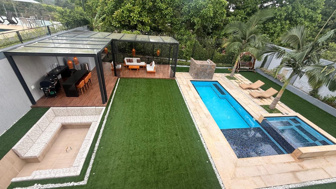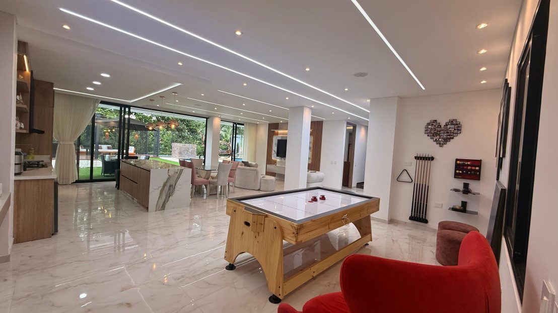 cinema, cocina auxiliar, sala de juegos, piscina privada, jacuzzi, terraza BBQ, fire pit, sonido integrado, alarma, cortinas automatizadas, bodega.