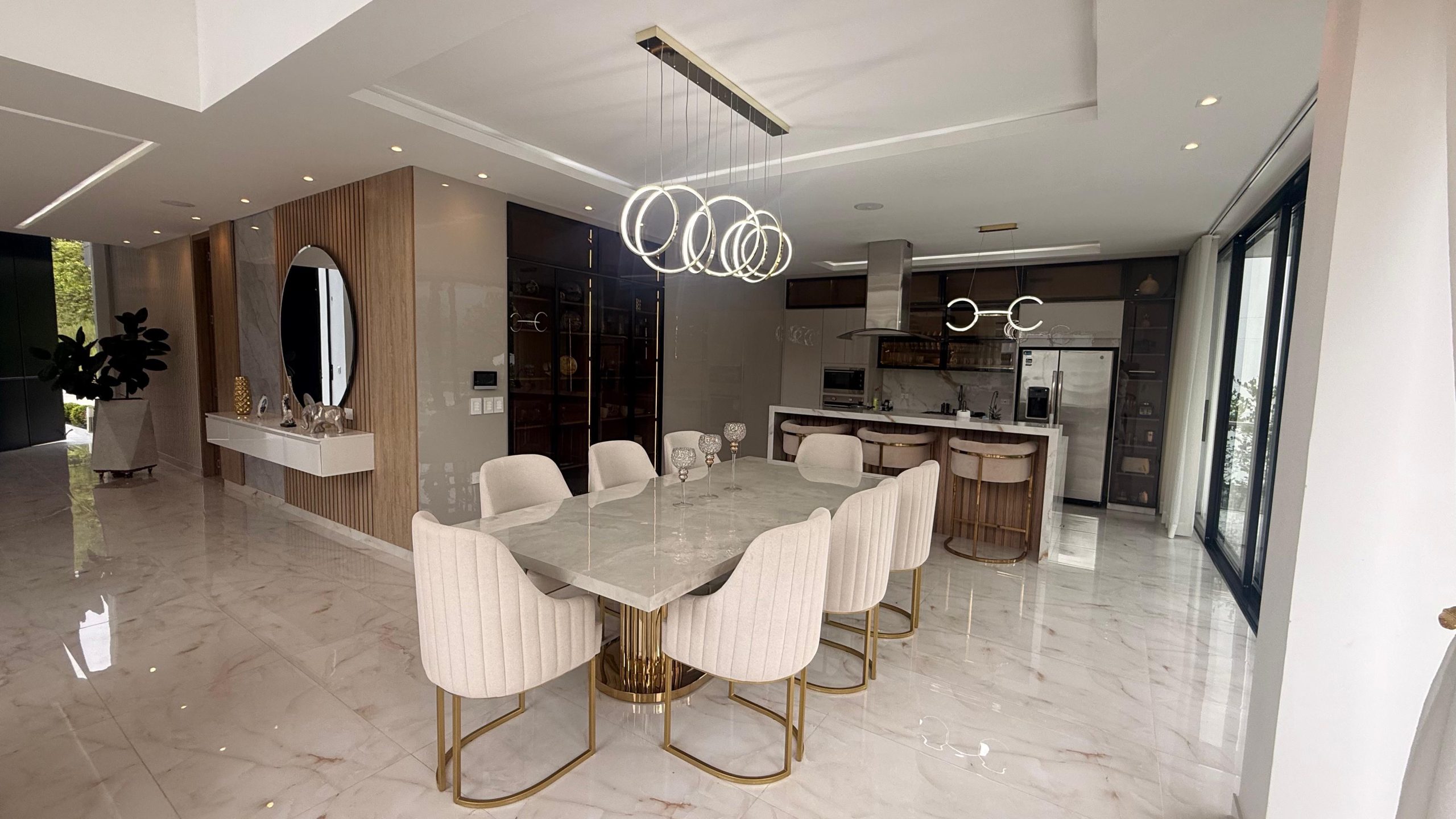 * Cocina: integral moderna con torre de hornos y barra isla